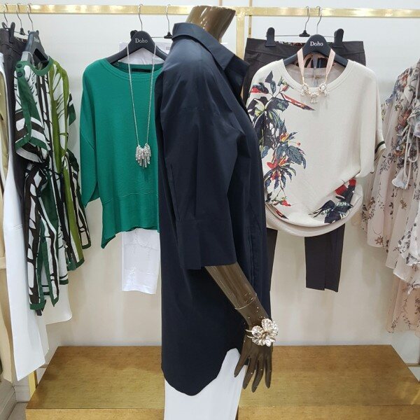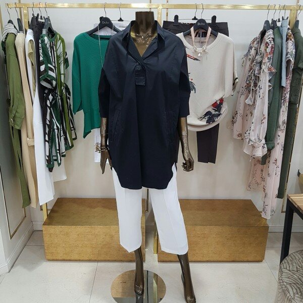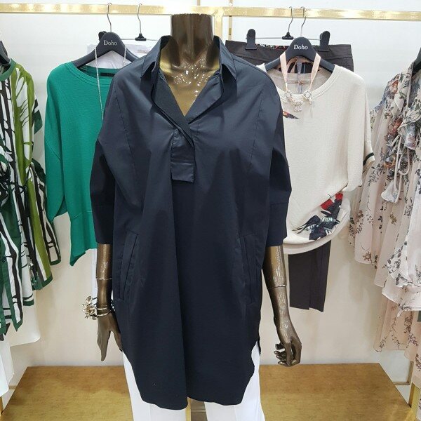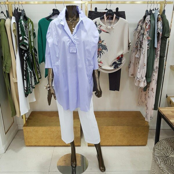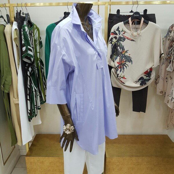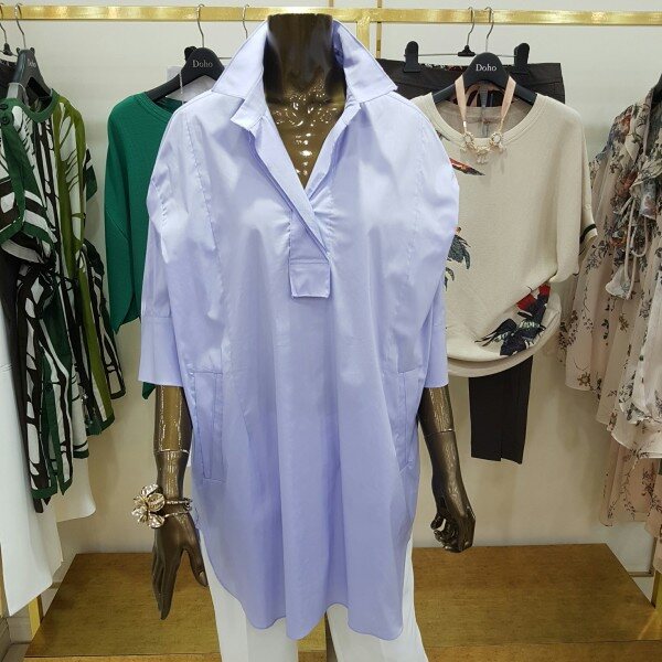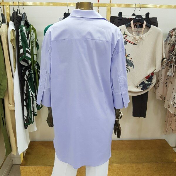 미디움 길이의 박시한 디자인의 셔츠 입니다