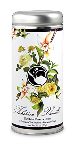 -. Binding : Misc. -. Brand : The Tea Can Company -. EAN : 0602003122224 -. Feature : 10 Premium Pyramid Tea Sachets / Brews 20-30 Cups (depending on strength) / Blended and Packed in the USA / Created with luxuriously rich French Polynesian vanilla and rose petals picked from the finest blossoms. / Gourmet, quality taste of loose leaf tea with the ease and convenience of a tea bag. -. IsAdultProduct : 0 -. Label : The Tea Can Company -. Manufacturer : The Tea Can Company -. NumberOfItems : 1 -. PackageQuantity : 1 -. ProductGroup : Grocery -. ProductTypeName : GROCERY -. Publisher : The Tea Can Company -. Studio : The Tea Can Company -. Title : Tahitian Vanilla Rose Tea -. UPC : 602003122224