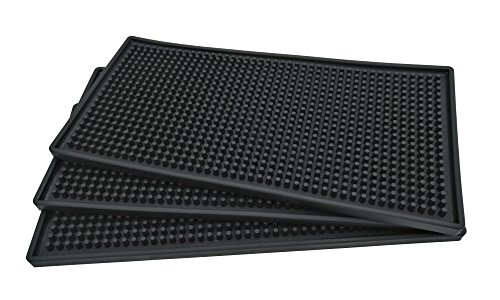 Studio : OUTTEZII Publisher : OUTTEZII Product Description Specially design: The bristled surface allows air flow underneath wet glasses for quick and efficient air drying, and it provides a non-slip surface. This mat also helps absorb accidental spills or splashes. The receptacle ends provide drainage for spilled beverages, which will help keep liquid off the counter, bar top, or floor, ultimately making cleanup a breeze. Extremely easy to wash Simply place the mat over the sink and let liquid drain out. Rinse with warm water. This bar mat boasts a sleek black color, complementing the decor of virtually any establishment.