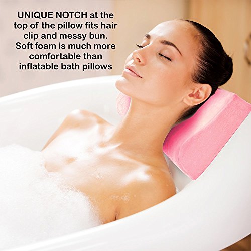 Studio : Top Notch Bath Pillow Publisher : Top Notch Bath Pillow Product Description COMFORT NOTCH Top Notch bath pillows feature a comfort notch along the top edge so you're able to lay back in the tub while wearing a hair clip, scrunchie, or messy bun. In addition to the ergonomic design, this pillow is extra soft and large with a 11" x 9.5" pad for head, neck, and shoulder support. NO SUCTION CUPS Many bath pillows use suction cups on the back to keep it in place. Not only do they tend to come undone, they're a pain to yank away from the tub surface. Top Notch is the only head cushion brand to feature convenient cling plastic and Velcro backing that secures the pillow. Simply place the backing and pillow where you want them, lay back, and shift it as needed. PERFECT FOR BATH, SPA, JACUZZI Don't confine your comfort to the bathroom. Bring your bath pillow with you to the spa, jacuzzi and hot tub, as well as on vacation, business trips, and on the road. As long as you have a smooth surface, you have a place to kick back in comfort. LIFETIME WARRANTY We value your money, time, and comfort as much as you do. We've designed the Top Notch bath pillow with care to ensure that your relaxation time is restful and enjoyable each and every time. If it's not the most comfortable bath pillow you've ever owned, simply let us know and you're covered, no questions asked. -Top Notch Luxury Bath Pillow -Notch Accommodates Hair Clips and Messy Buns -Cling Plastic for Easy Application and Removal -Natural Latex -Antimicrobial, Mold and Mildew Resistant -Lifetime Warranty 0