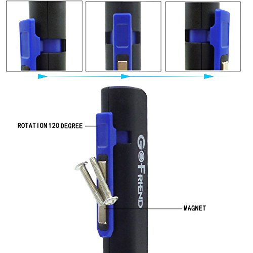 180 Degree Rotation Magnetic Clip: Magnetic clip for attaching to pocket, belt, pouch or book, and the strong magnets can hold the work light on ferrous metal surface, such as car, truck , machine when working or repairing. 120 degree rotation clip provides multi-angle lighting.