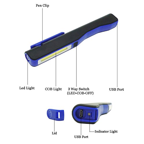 COB + LED Work Inspection Light: Super bright white 3W COB light (MAX 240 lumen) in the Body to have light around, extra 1W LED light(80 lumen) locating on the top end makes it a hand torch for you at meanwhile.