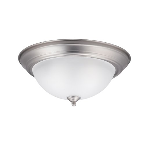 - Brushed nickel finish with satin etched glass shade
