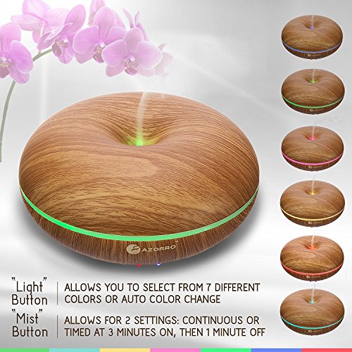 Essential Oil Diffuser - PREMIUM QUALITY Aromatherapy Diffuser and Adjustable Cool Mist Humidifier with 7 LED Lights Wood Grain by Azorro