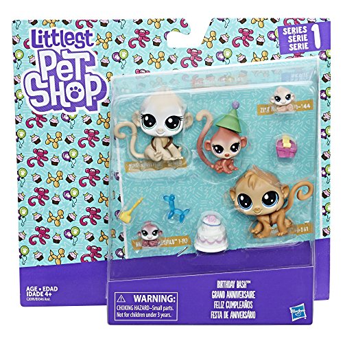 Meet this fun-lovin’ monkey family! Kids can imagine that the clan is celebrating a birthday. Is it the twins’ special day, or is it Big Sis who’s a year older? Either way, everyone certainly seems to be having a great time. There’s a birthday cake, party favors, and a gift to be opened… why not crash the party and join the fun? Littlest Pet Shop and all related characters are trademarks of Hasbro.Feature
