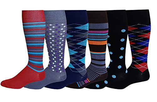 6 Pairs Pack Moderate ( 15-20 mm Hg ) Sports , Travelers , Anti-Fatigue , Graduated Compression Socks (10-13, Assorted)