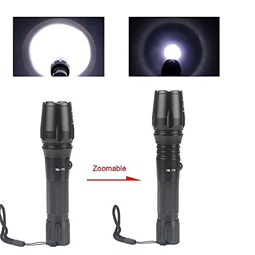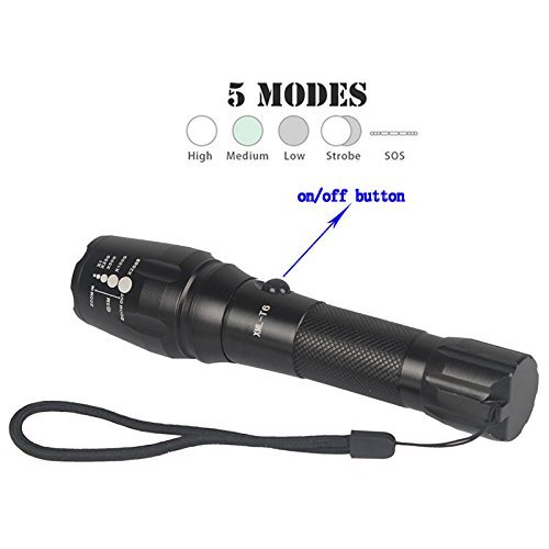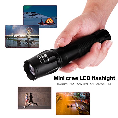 ANJAYLIA 1200 Lumens CREE XM-L T6 LED Zoomable Handheld Tactical Flashlight, 5 Light Modes, Water Resistant (Batteries Are Not Included)