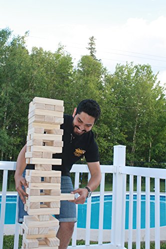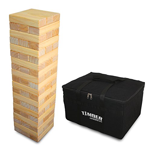 Get ready to take your party to the next level with the best look in tumbling tower games!!!TIMBER has 20 rows of 60 - 7.5" x 2.5" x 1.5" silky smooth sanded pine wood included in a high quality, and durable, carry bag.Impress your favorite crowd with a larger than life twist on board gaming. This classical game is hard not to love with adrenaline and anticipation building between each turn, magnified with this JUMBO version.Pregame height starts at 2.5 feet and can reach over 5 feet tall; that is taller than actor Danny Devito!The game rules are very easy to follow which makes it suitable for everybody 8 years and up. TIMBER is one of the few games that can also be enjoyed solo.It is highly suitable outdoor, as well as indoor; highlighting your friends' BBQ or your holiday office party - to putting it to good work at fundraisers or venues.To play, after first stacking the game into a solid tower, players take turns to remove a single block to place on top. The goal is to be the last one to stack a block without the tower crashing over. BANG!The TIMBER pieces are individually crafted with round edges, completely sanded to be perfectly smooth all over! This makes our game more expensive to make but your safety and satisfaction is our number one priority. Celebrate splinter-free!Please take advantage of our Product Launch Discount today and get 35.8% OFF! Your thoughts will be greatly appreciated in the review section.TIMBER offers the best quality versus price available on the market.TIMBER will outstand your expectations - and your friends!Feature