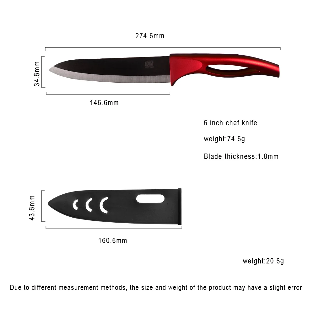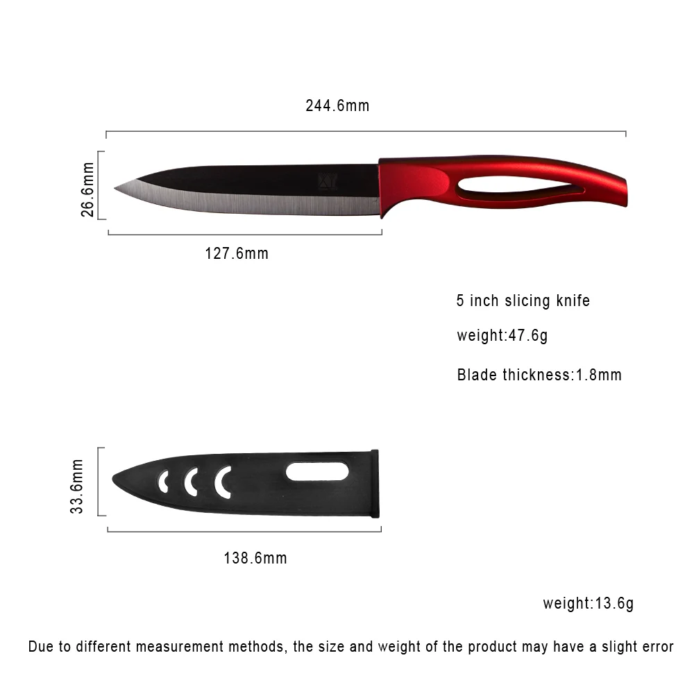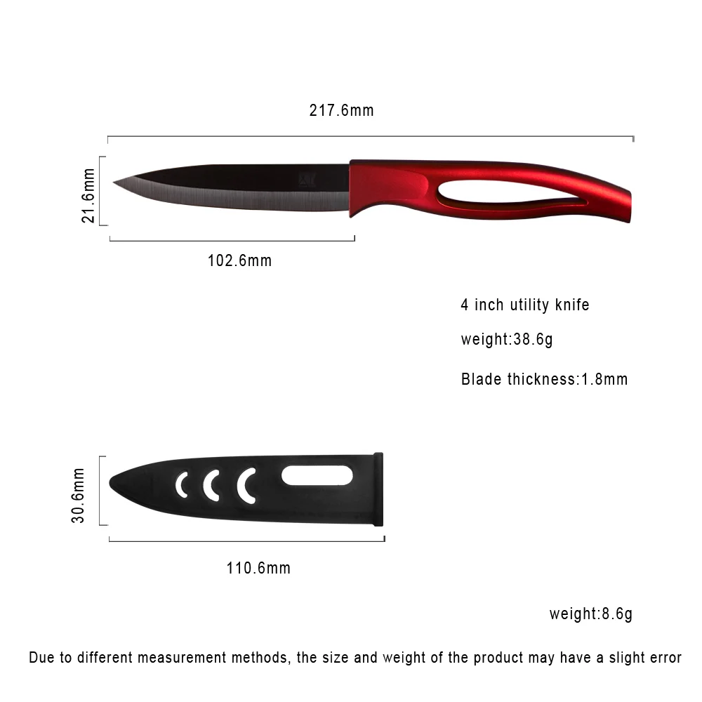 Knife color:red handle+black blade