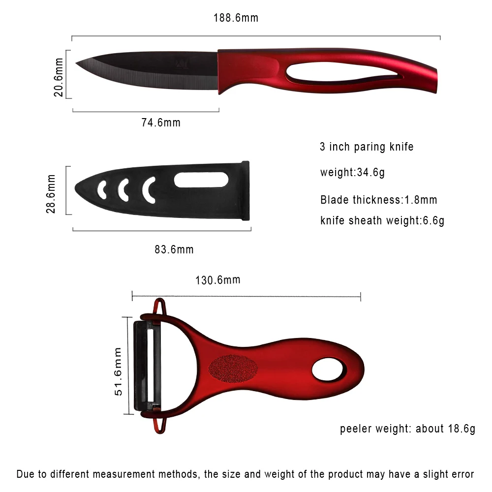 Knife and peeler:3, 4, 5, 6 inch ceramic knife+one peeler