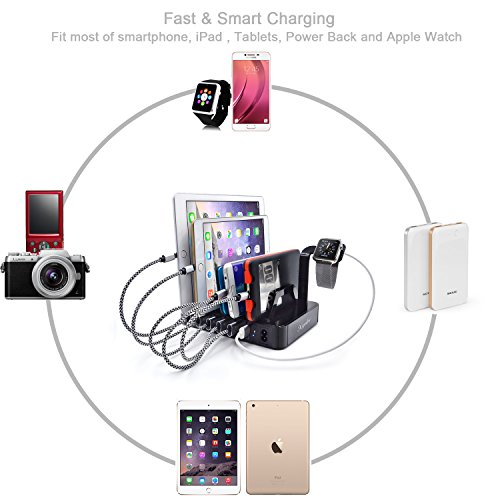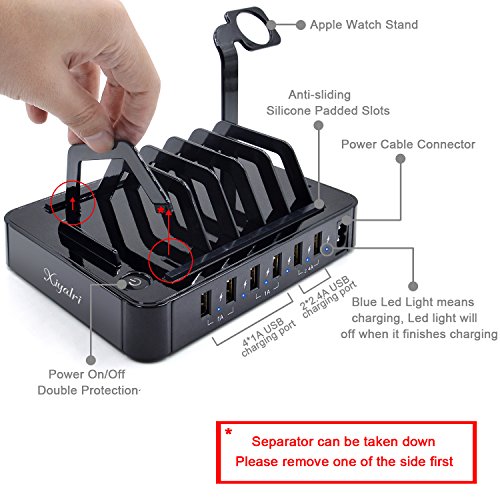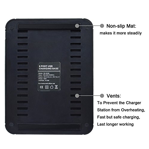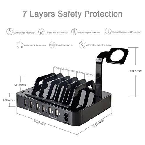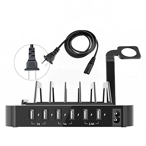 -. Binding : Electronics -. Brand : Blind monk -. Color : Black -. EAN : 0612046156957 -. Feature : 50W 6-port USB charger (2*2.4A and 4*1A output ports) with built-in surge protection device for overnight charging to ensure ultimate safety for your family / Equipped with detachable holders and an apple watch stand to keep all of your devices organized and centrally located at home, in the office or on the go. Also with Non-Slip pads on the bottom to keep it from sliding. / Charges 6 devices simultaneously at full speed. Double protection with a power key and LED indicators. Lights will be off when finishing charging / Ideal gift for those who want to charge their cell phone, tablet, power bank scanner and Bluetooth Device / Customer Service: 30-day money back guarantee, 24-month replacement warranty. Any question will be answered within 12 hours -. Label : Blind Monk -. Manufacturer : Blind Monk -. PackageQuantity : 1 -. ProductGroup : Wireless -. ProductTypeName : PHONE_ACCESSORY -. Publisher : Blind Monk -. Studio : Blind Monk -. Title : 50W 6-Port USB Charging Station with Surge Protection - Black -. UPC : 612046156957
