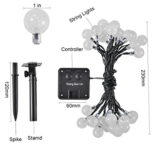 PRODUCT DIMENSIONS---5-feet lead and 20-feet wire with 30 bubble globes.you can surround anywhere.Let your house be fantasy at night.For your life increase more romantic ,Warm and happy.