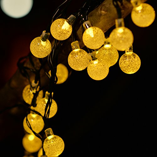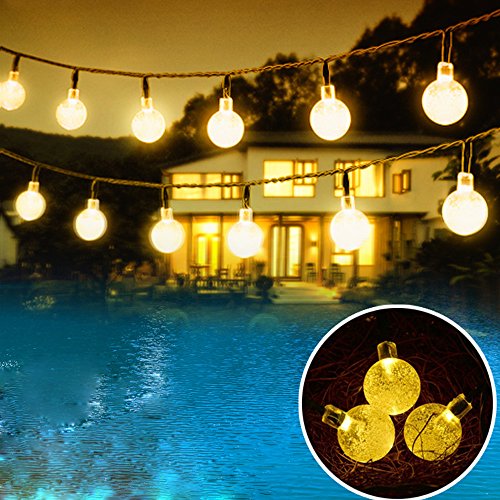 Outdoor Solar Powered String Waterproof Lights 20 ft Garland 30LED Fairy String Lights Bubble Crystal Ball Lights Decorative Lighting for Indoor Garden Home Holiday Decorations(Warm White)