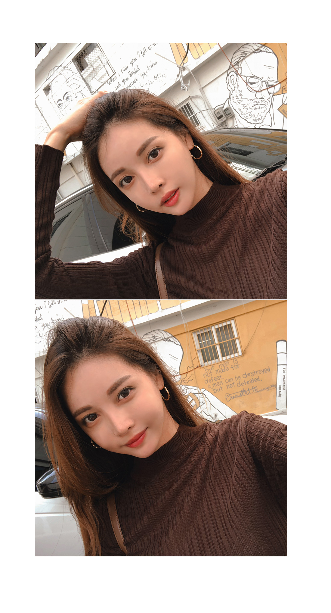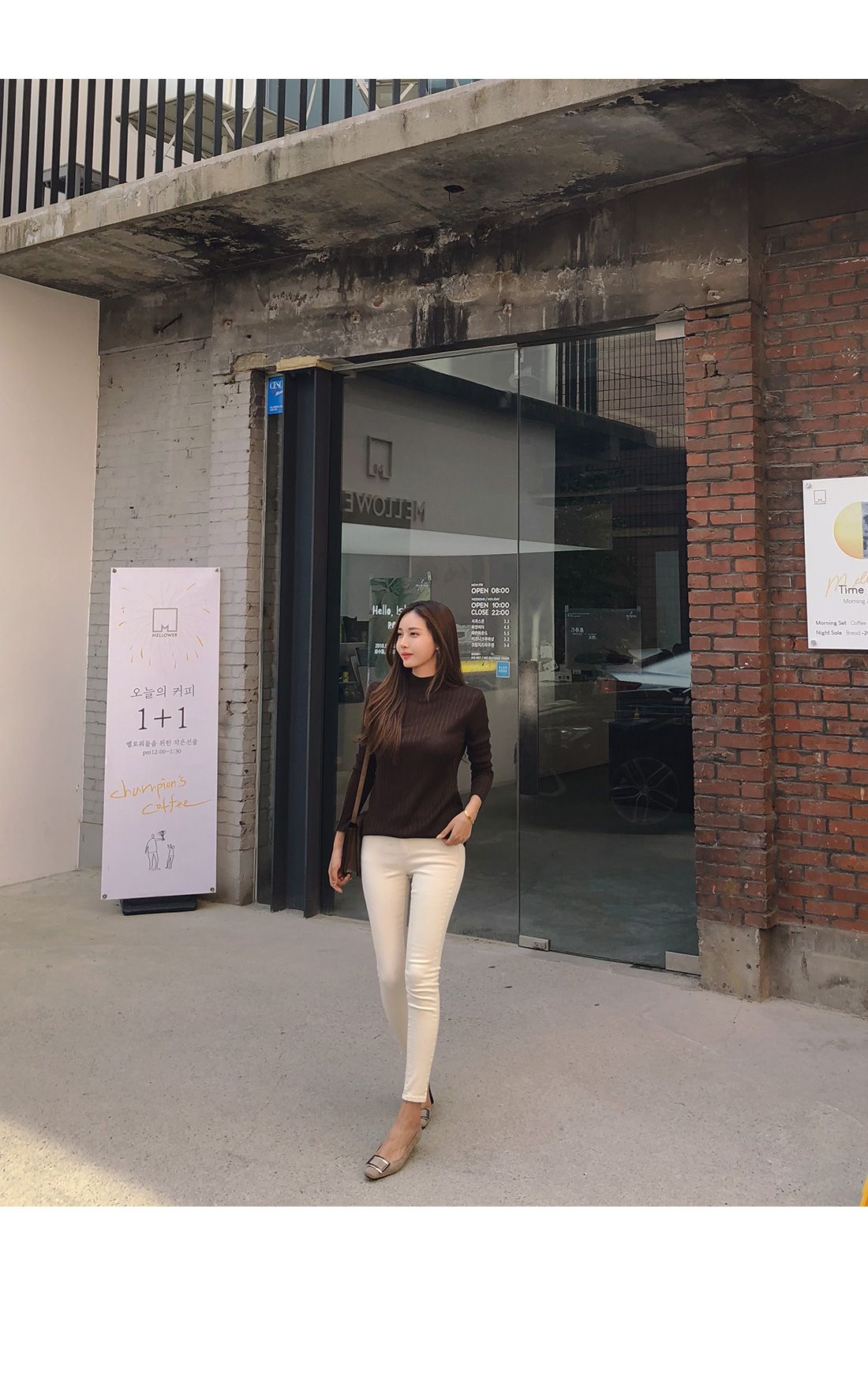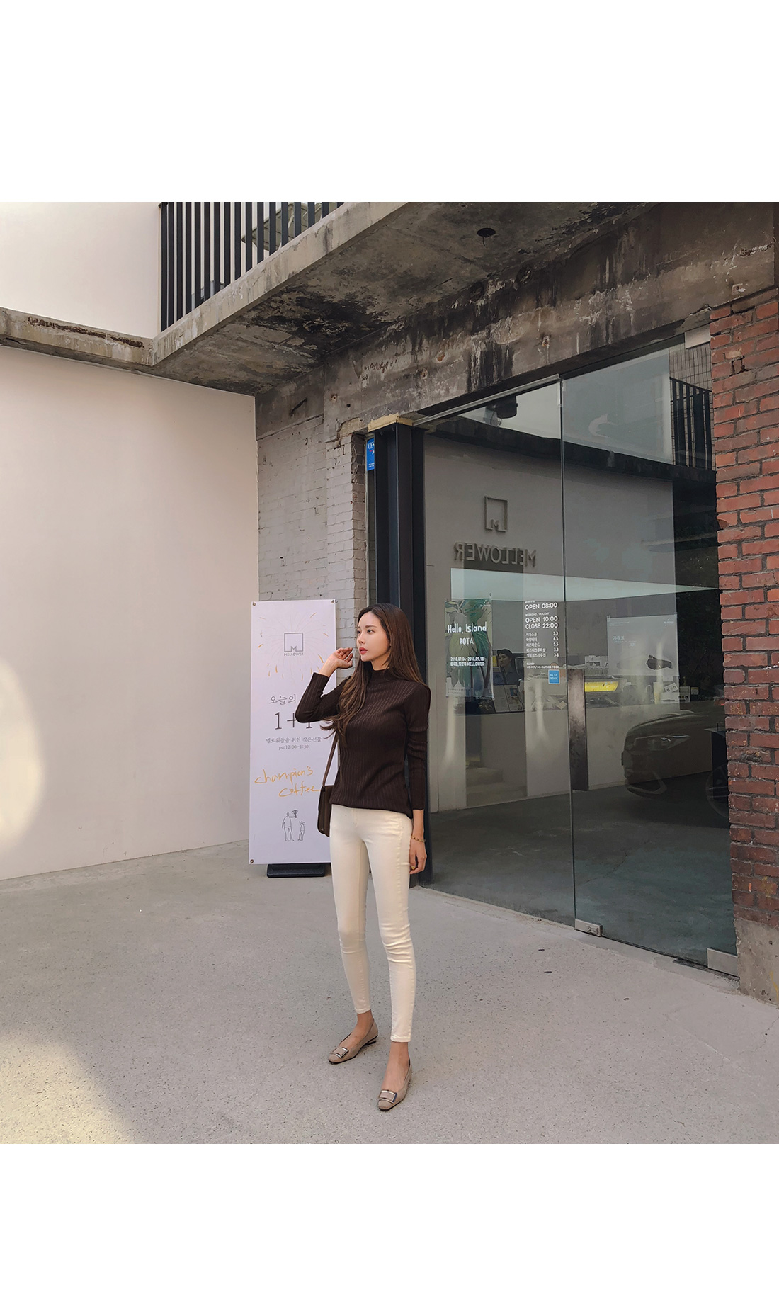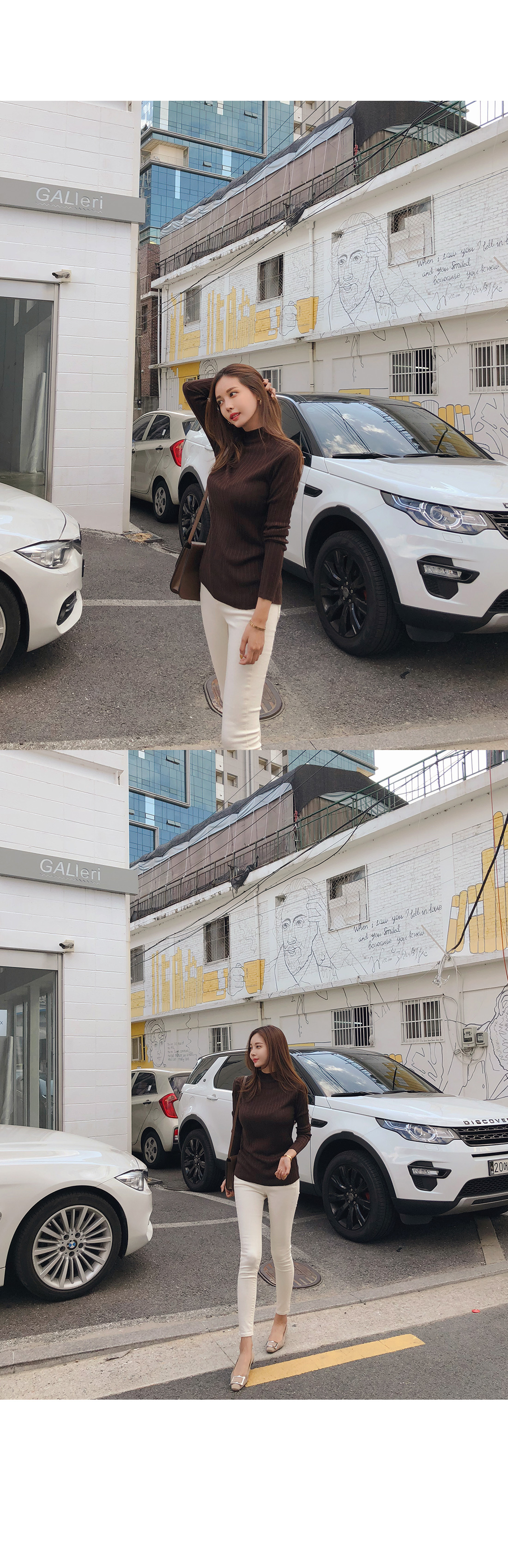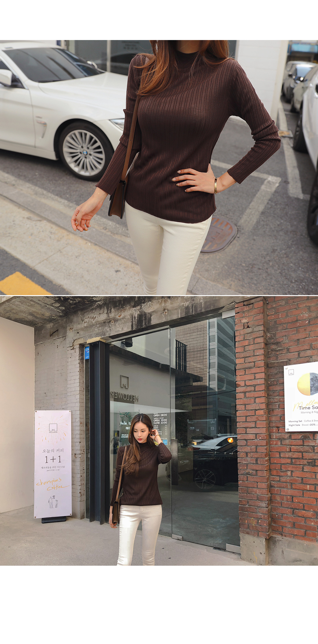 MD COMMENT 데일리하게 즐겨입기 좋은 니트를 소개할게요.반하이넥 디자인으로 안정감있는 착용감을 느낄 수 있는 아이템이구요.세로 골지 짜임으로 날씬해보이며 바디라인에 슬림하게 떨어지는 라인으로 너무 핏되지 않아 부담없이 즐겨입기 좋아요.전체적으로 신축성이 뛰어난 아크릴 혼방 소재로바디를 감싸주어 편안한 착용감을 선사해드려요.적당한 두께감의 니트 소재로 단독으로는 물론!FW시즌에 다양한 아우터 안에 이너로 레이어드하여두루두루 즐겨입기 좋은 추천할게요!7가지 다양한 컬러로 준비했으니 상세 페이지 참고 후 굿 초이스 해주세요:)COLOR/SIZE 브라운,네이비,카키,스카이블루,베이지,아이보리,블랙FREEMODEL FITTING 브라운/FREE