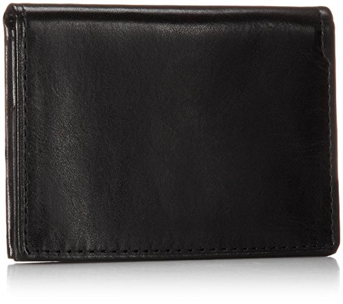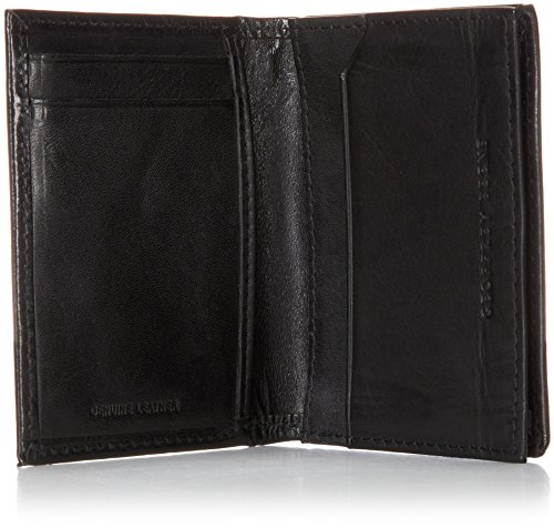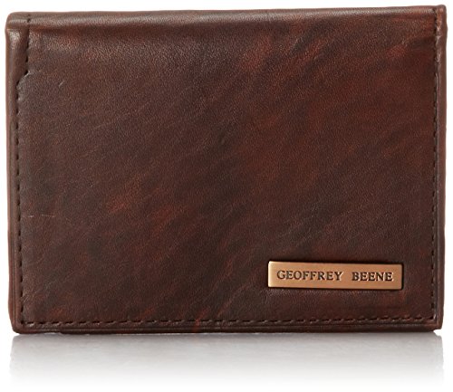 Geoffrey Beene Men's Gussetted Cardcase with Polished Plaque Logo, Black/Gunmetal, One Size