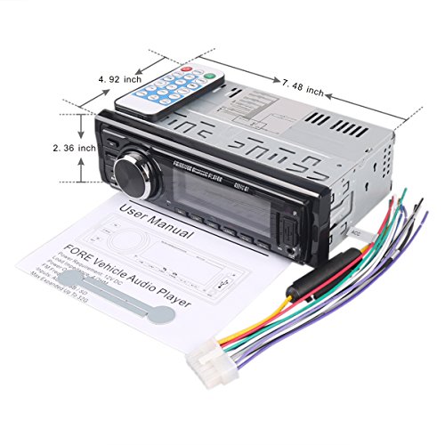 FORE FR-6227 Single Din Vehicle Bluetooth Digital Music MP3 Player Receiver with Wireless Remote Color Black