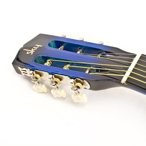- Feature : 38" Full Size Guitar / Blue Color / Cutaway Design / Volume & Tone Controls / Comes With Guitar Case, Strap, Extra Strings, Pick, and Tuner.