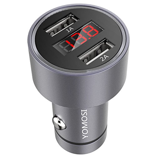 -. Title : YOMOSI カーチャージャー シガーソケット PowerDrive 2 ( 12V ・ 24V 車対応 ) LEDスクリーン付き 車載充電器 急速充電 iPhone iPad Android スマホ タブレット 各種対応 金属(ブラック)