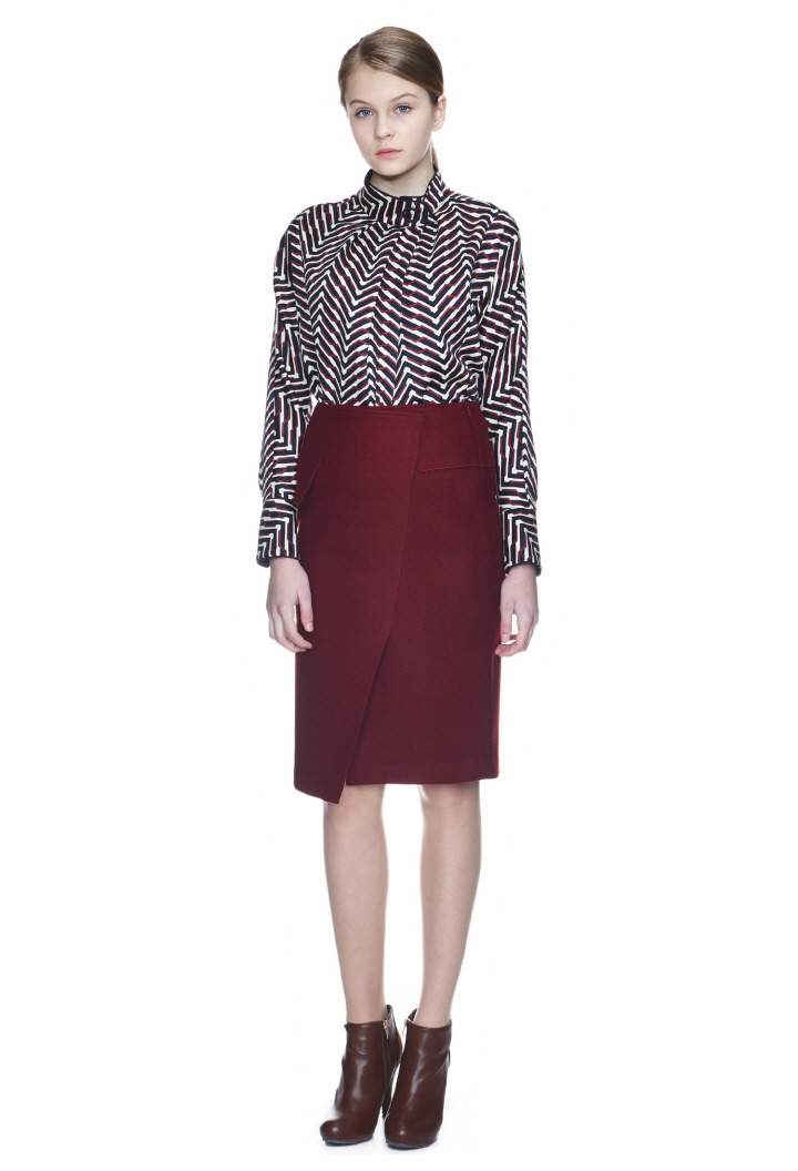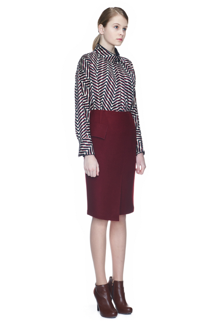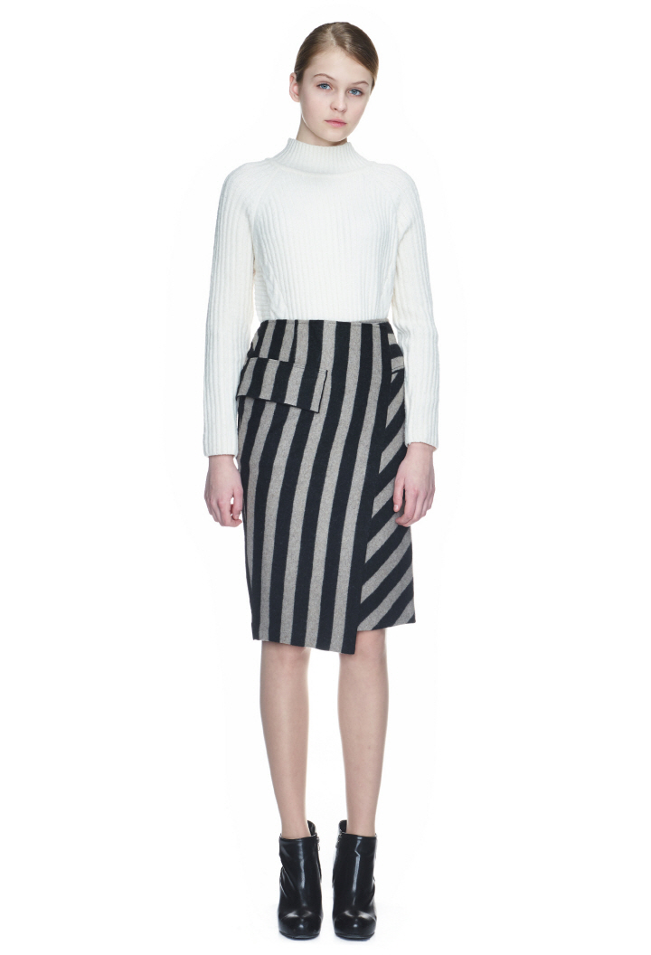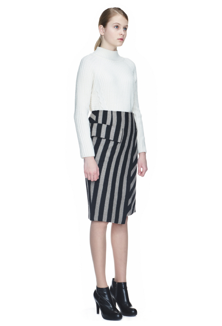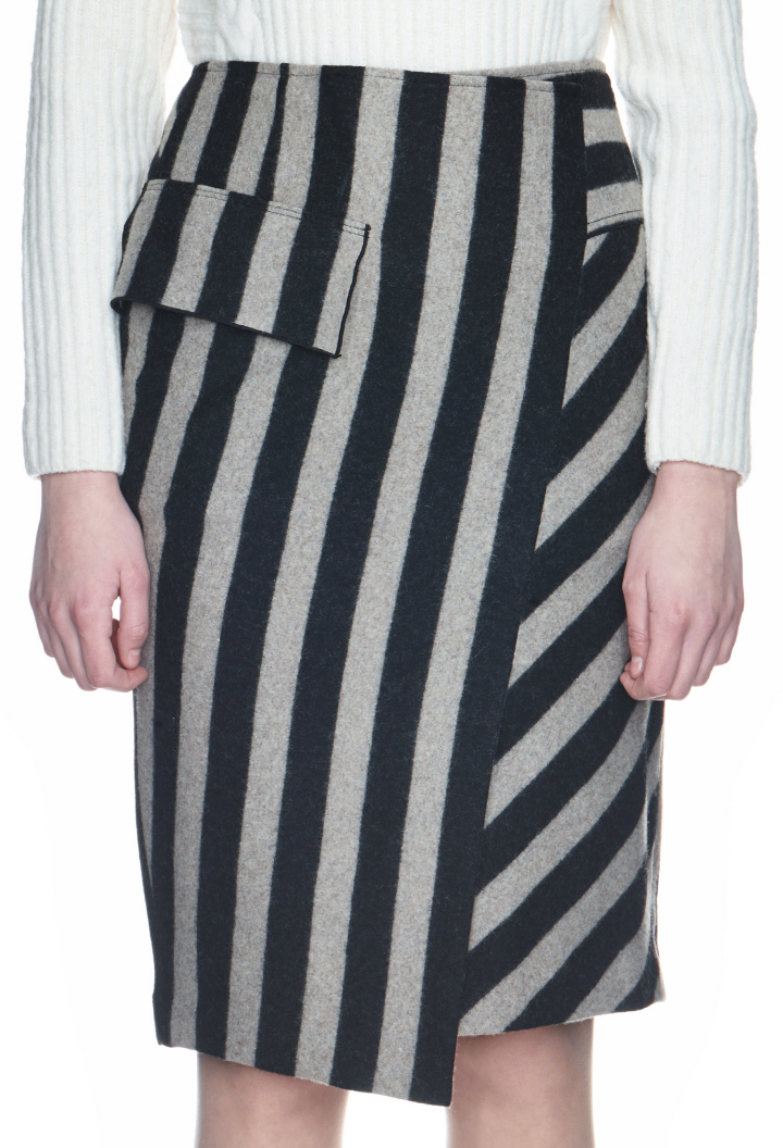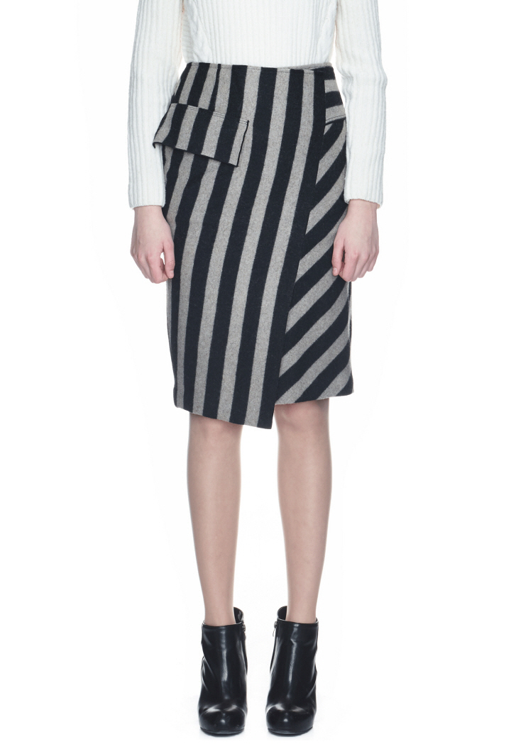 사선으로 떨어지는 언발라스한 랩 스타일이 매력적인 스커트입니다.