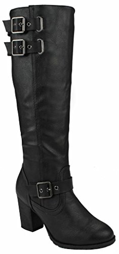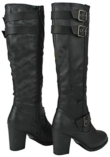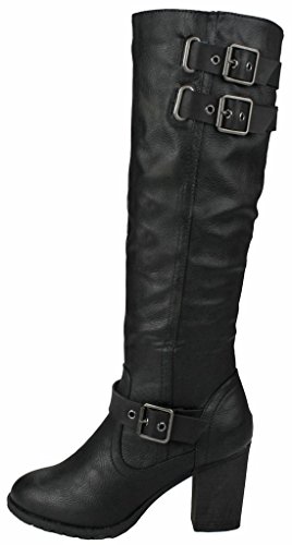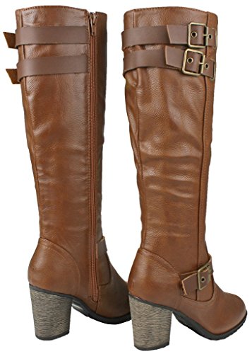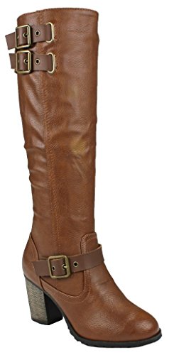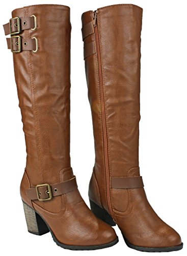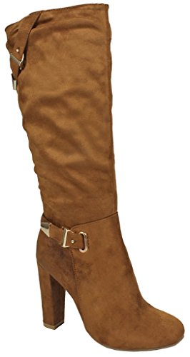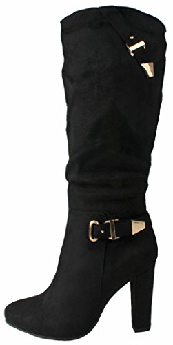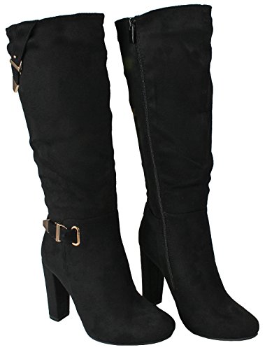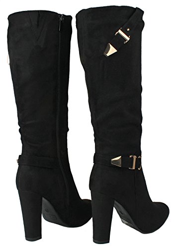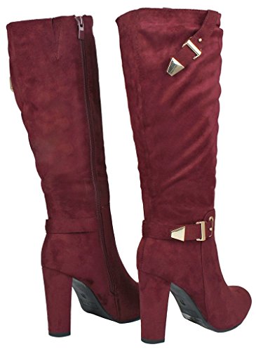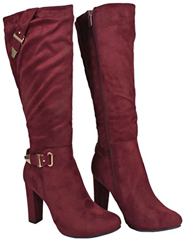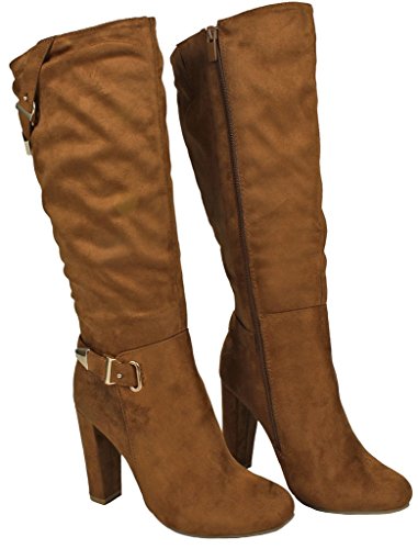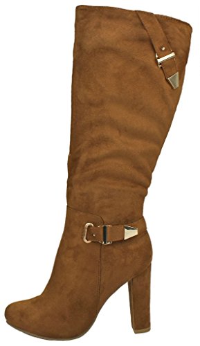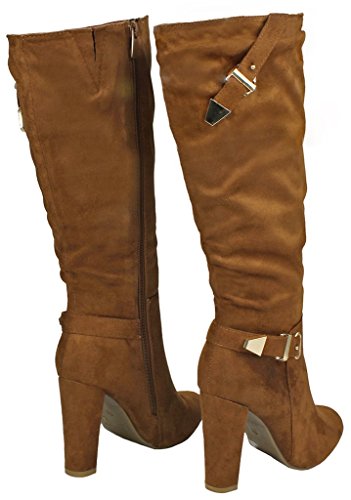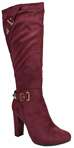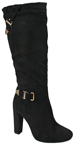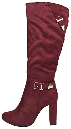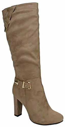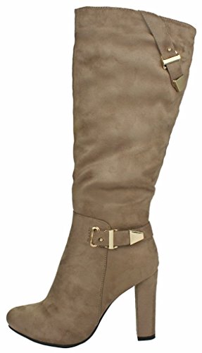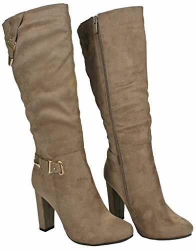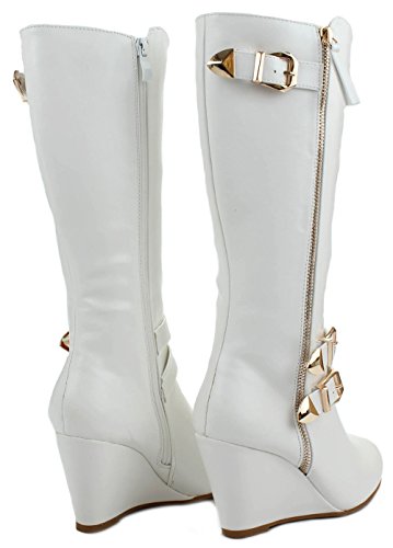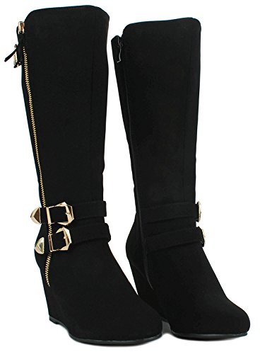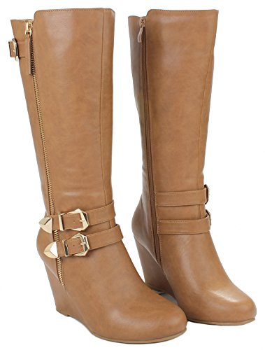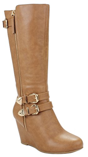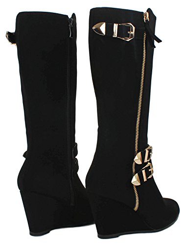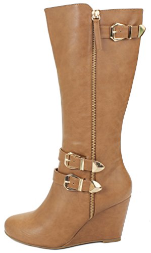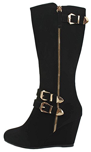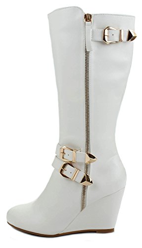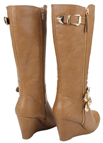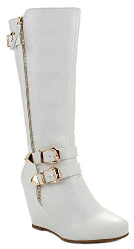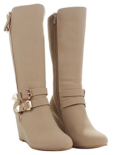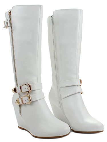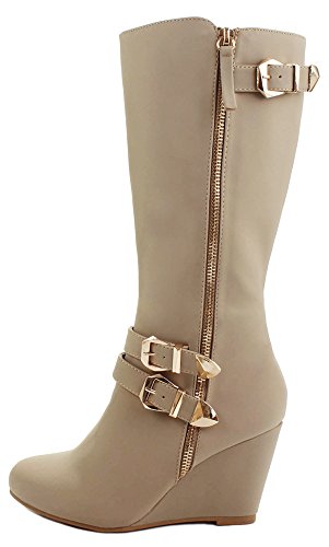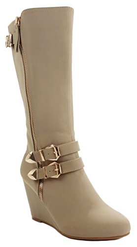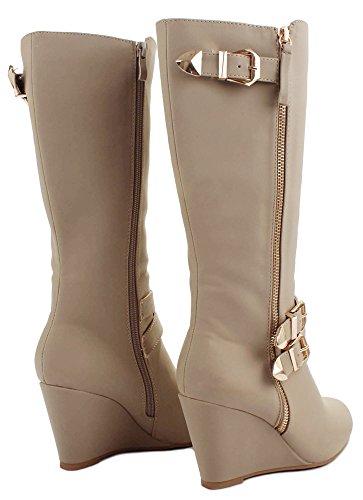 | Paola80 Gold Decorative Zipper Buckle Wedge Heel Knee High Dress Boots |