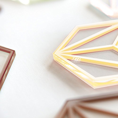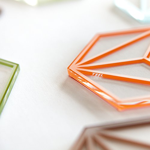 -. Brand : TiiL -. Feature : These modern designed acrylic hexagonal coasters protect furniture from hot and cold drinks. Allows the beauty of your furniture to show through the uniquely designed coaster. Small silicon tabs keep the coasters suspended above the furniture surface. / Solid clear acrylic coasters with a geometric design created by a unique laser cutting process. This creates a fascinating prism-like effect as light passes through and around the designs in the coasters. / Use individually or create an endless variety of visual interest by arranging them into patterns. Creates visual art for a blending of form and function. / One of the most uniquely designed coaster sets available. Quality workmanship throughout. Only a limited number have been produced. / Set of 6 coasters comes in a beautiful gift box ready to make a statement of artistic good taste for that special person on your list. -. ProductGroup : Kitchen -. ProductTypeName : KITCHEN -. Title : Hexa Drink Coaster Set By TiiL. Set of 6 Modern Coasters for Drinks Plus Gift Box