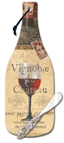 CounterArt French Cellar Wine Bottle Shaped 12-1/2-Inch Glass Cheese Cutting Board with Spreader Knife