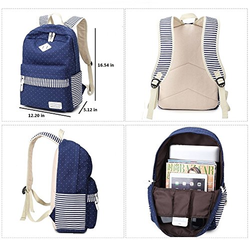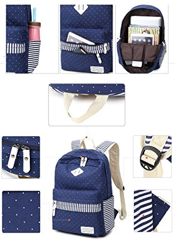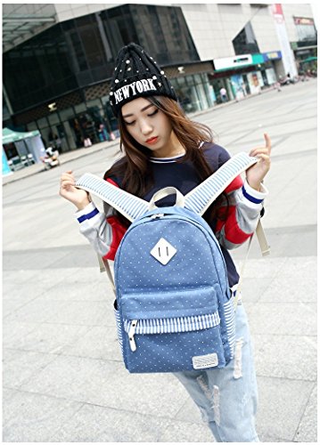 -. Title : Generic Canvas Simple Polka Dots Stripe Personality Backpack (Blue)