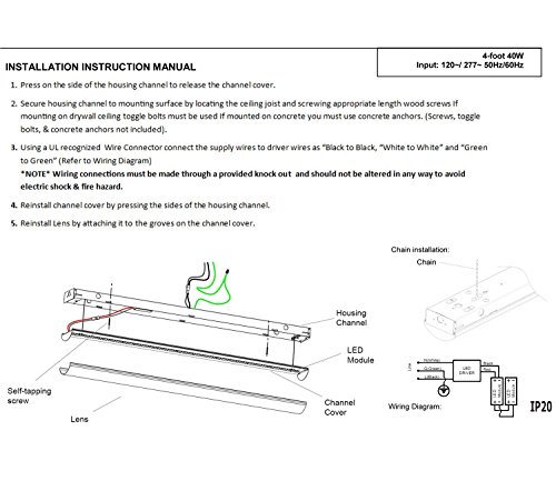 40 Watt LED Linear Strip Light Commercial Grade. 4200 Lumen easily replaces older two lamp fluorescent fixtures. 5000K Color Temperature (Daylight) for a soft, bright lighting environment