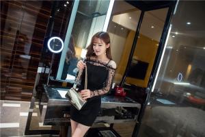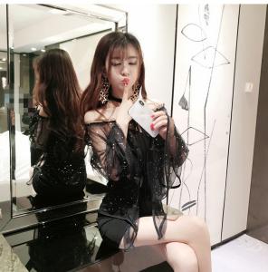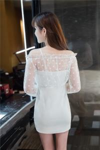 ドットチュール オフショルトップス タイトワンピース フィット トレンド セクシー ミニ丈 可愛い プチプラ