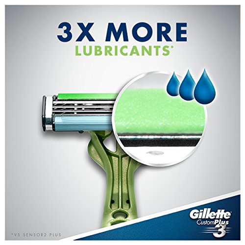 Gillette CustomPlus 3 Disposable Razor, Sensitive, 4 Count, Mens Razors / Blades
