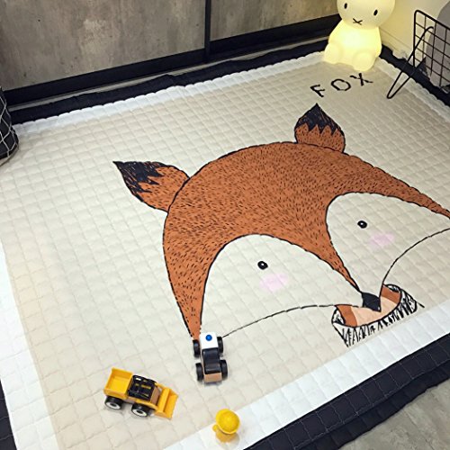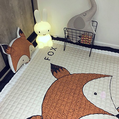 Description Soft floor surface for babies and children to play, especially for you who live in hardwood floors house, perfect for reducing noise and impact, and a great insulator on all floor surfaces. Ideal for encouraging crawling, rolling, sitting up, and learning to walk. The cushioned surface ensures a soft landing for rolling, tumbling, and falls. Also it's comfy for you to lay on and play with your children. We provided 6 styles with different animal pattern, bear, rabbit, deer, giraffe, fox, elephant, they are cute and lovely. Very useful accessory to brighten up your beloved little ones' look, also as a gift. Material:Natural cotton, hygienic and safe. Package Includes 1x Play Mat (Toy NOT INCLUDED) Note, Actual color may vary from the color on your screen due to monitor color restrictions. Size Information :76 x 58 x 0.6 inch =190 x 145 x 1.5 cm Easy Care Suggest wash before first use. Machine wash with cold water; Do not bleach; Tumble dry, low heat; Do not dry-clean. Fade Resistant, anti-wrinkle and difficult deformation. After-sales Service 100% satisfaction, if you have any question please feel free to send message to our customer service, our team will provide professional solution to you in 24 hours. 0