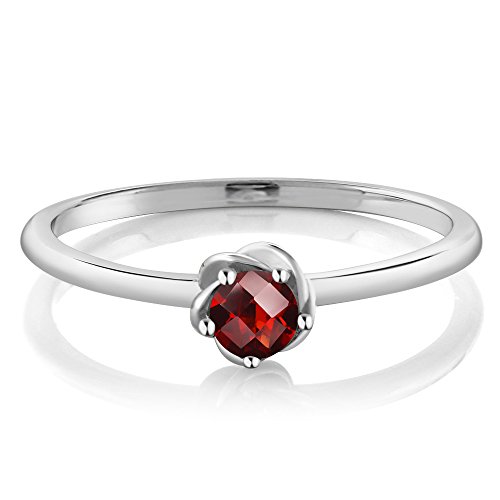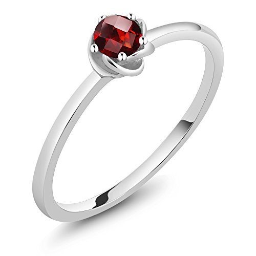-. Title : 10K White Gold 0.25 Ct Round Checkerboard Red Garnet Solitaire Engagement Ring
