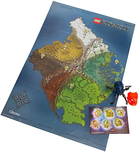 -. Feature : Features a translucent orange mask, buildable Skull Spider, booklet with comic strip/character line-up, sticker sheet and a cool double-sided poster with island map and mask overview