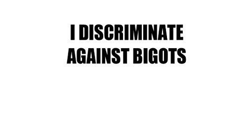 -. Brand : Shirt Mania -. Feature : Dimension: 9 inc. On Longest Side. / Black Color Clear Background Decal. Color Options On Decals Are Available If Needed. Other colors is available. Please see our Color Chart for Colors Available and Please e-mail us If any Other color needed. MADE IN U.S.A. / Great Quality Vinyl Cut, Water-Carwash-Weather Proof Upto 9 Years Life Time. / %100 Satisfaction GUARANTEED.Packaged Better & Shiped Faster. / Great Gift Idea For Family And Friends. Shirt Mania Brand, High Quality Vinyal Material Made For Longer Life Time And For All Weather Conditions. -. Label : Shirt Mania -. Manufacturer : Shirt Mania -. ManufacturerPartsWarrantyDescription : Parts -. Model : decmanE10000927 -. MPN : decmanE10000927 -. PackageQuantity : 1 -. PartNumber : decmanE10000927 -. ProductGroup : Automotive Parts and Accessories -. ProductTypeName : AUTO_ACCESSORY -. Publisher : Shirt Mania -. Studio : Shirt Mania -. Title : I DISCRIMINATE AGAINST BIGOTS Decal Car Laptop Wall Sticker