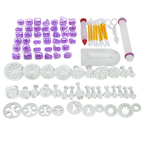 Fondant Tools,Thsinde 87 Fondant Cake Sugarcraft Alphabet Letters Cutters Cake Decorating Tools Cutters Icing Modelling Tool Kit Rolling Pin, Smoother, Embosser Mould Tools,Scissors