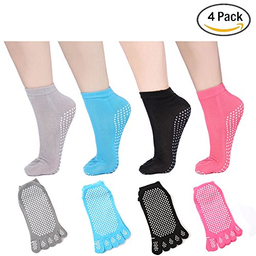 -. Title : 4 Pairs Toe Non Slip Pilates Yoga Socks with Grips for Yoga Dance Pilates Ballet Barre
