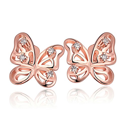 -. Title : [比翼堂] レディース ピアス 蝶モチーフ アクセサリー サージカルステンレス ピンクゴールド キャッチ付 【高級フランネルケース付き】 ギフト梱包済み
