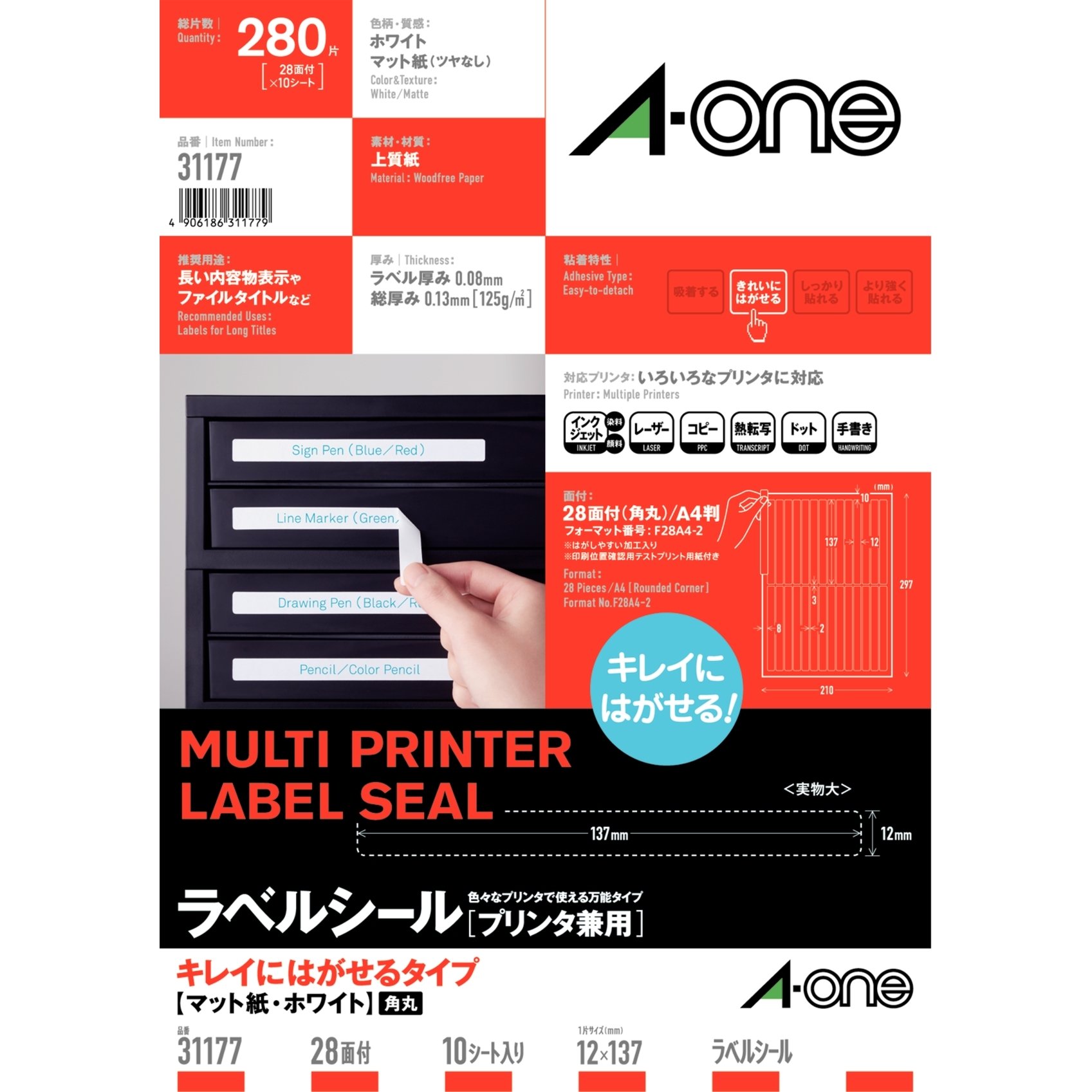 Peel off the A-One label seal printer shared beautiful 28 face 10 sheets 31177
