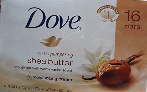 Dove Purely Pampering 16-4 OZ Shea Butter Bar Soaps, Warm Vanilla Scent, 64 OZ