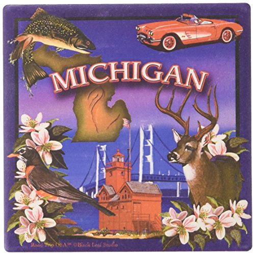 CoasterStone SQ039 Absorbent Coasters, 4-1/4-Inch, "Michigan", Set of 4