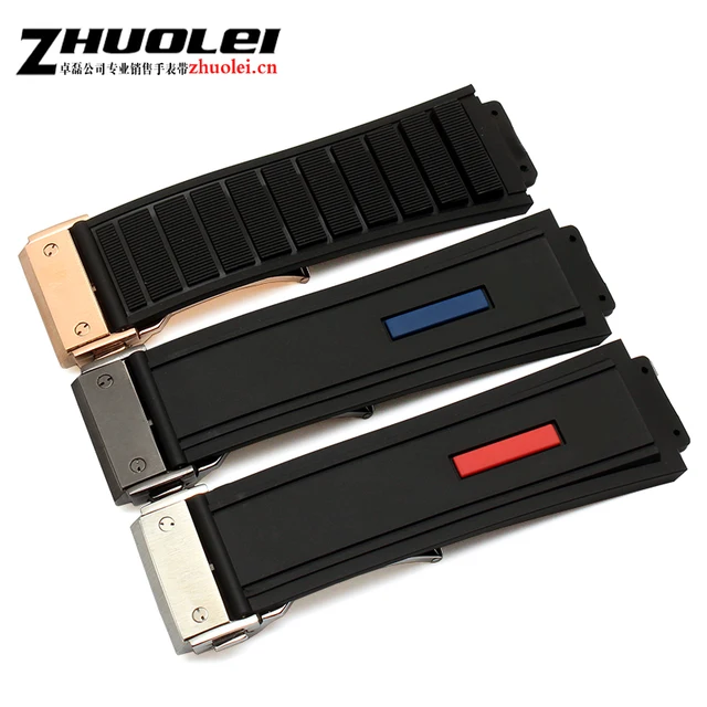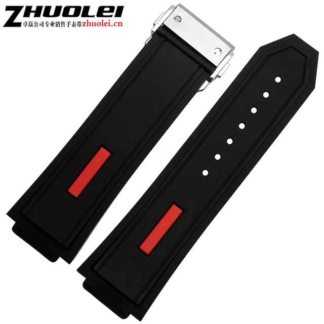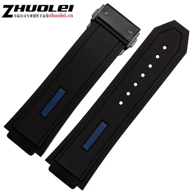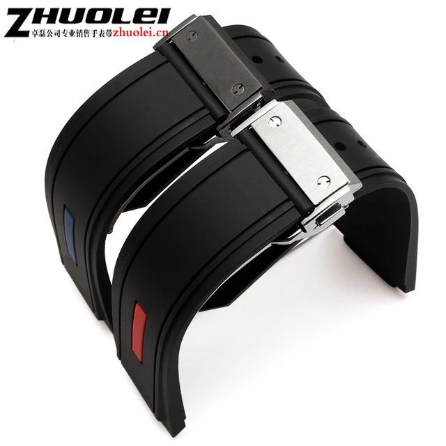 | [해외] 높은 품질 27*19 미리메터 (러그) 블랙 고무 Watchnand 부드러운 스트랩 팔찌 방수 배포 버클 남성 시계 밴드 |