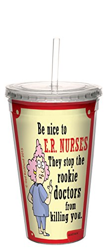 Nice To ER Nurses Aunty Acid 16-Ounce Double-Walled Travel Cup with Reusable Straw (CC98564) - Gifts for Nurse Appreciation Week - Tree-Free Greetings