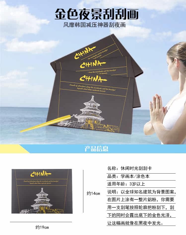 城市风景刮画纸彩色刮画纸 炫彩刮画纸 6张/包 学生用品