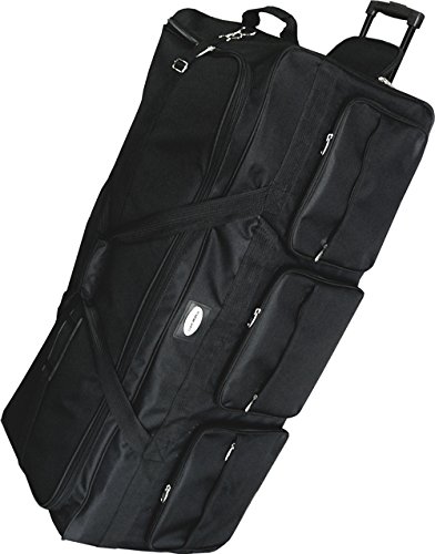 -. Brand : Transworld -. Color : Black -. Department : unisex-adult (lage only) -. EAN : 0753864299119 -. Feature : lage, suitcase, rolling duffle bag -. ProductGroup : Apparel -. ProductTypeName : LAGE -. Size : 42" -. Title : 42" 1200 D Heavy Duty polyester Rolling Duffel Bag ... -. UPC : 753864299119