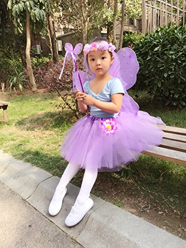★ Advantages-- Quality polyester made & Adorable design & Well constructed. This cute girl fairy costume set made of prime polyester which is durable. The wings have well construction that you could hold up well. & Cute tutu with soft stretchy elastic waisbands that is suitable for varying sizes. & Matching floral headband with 2-tier veil. & This fairy costume prefect for Christmas pageant, Birthday and theme parties, outdoor festival, school play and Halloween costume.