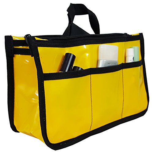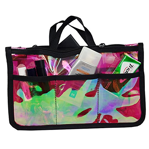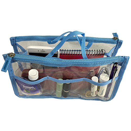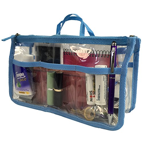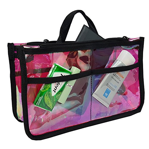 -. Binding : Misc. -. Brand : Q Girl -. Feature : Easily spot and organize your item with Clear see through material / mulitple pockets for all your belongs, keys, lipsticks, cell phones, lotions, makeup items, hand creams. / With handles makes switching purse easier. / 2 large zippered pockets, one large main pocket and 5 small pockets / keeps your designer purse clean and free of bad smell. -. IsAdultProduct : 0 -. NumberOfItems : 1 -. ProductGroup : Beauty -. ProductTypeName : BEAUTY -. Title : Clear Handbag Organizer See Through Cosmetic Badget Insert Purse Organiser Transparent Travel Pouch Shaving Toiletry Bag Liner with handle