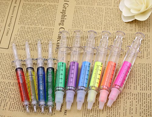 BestGrew® 4 Syringe Pens + 6 Syringe Highlighters Fluorescent Needle Watercolor Pen