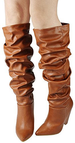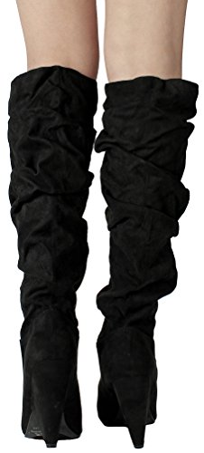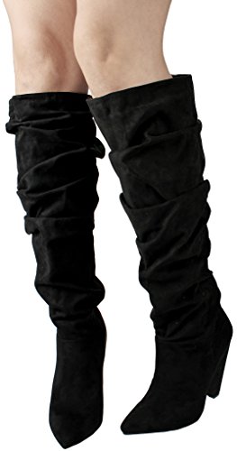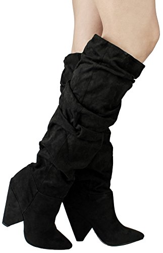 Product Description With these knee high boots! Featuring a pointed-toe, a slouchy and chunky cone heel design with leatherette/faux suede upper. Finished with a cushioned insole, Great with all your cold weather outfits, easy to pull on style. 0