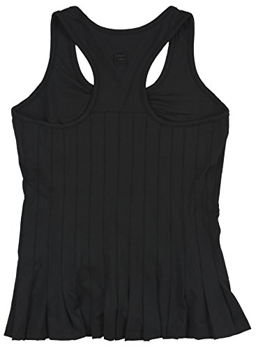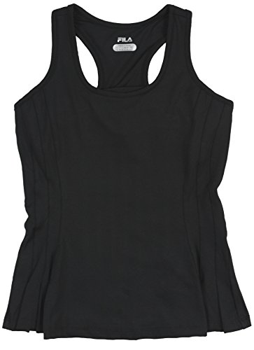 Studio : Fila Publisher : Fila Binding : Apparel Product Description 85% polyester / 15% spandex. Tonal F box patch logo. Knife pleating detail at side seam and back. Inside bra, mesh sleeves, curved hem and drop tail. Anti-microbial finish for odor control. 0
