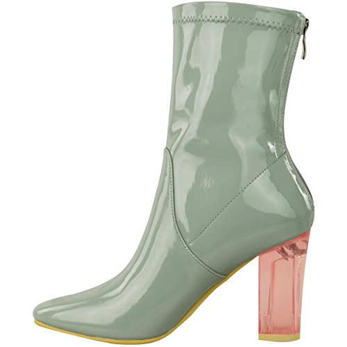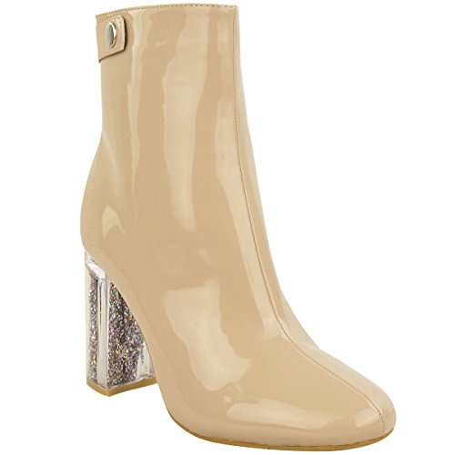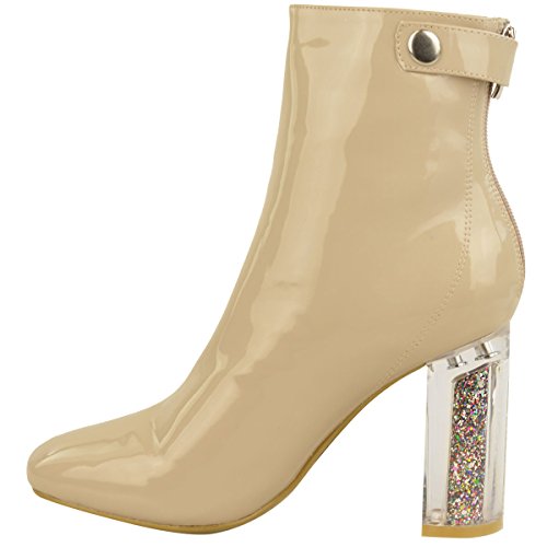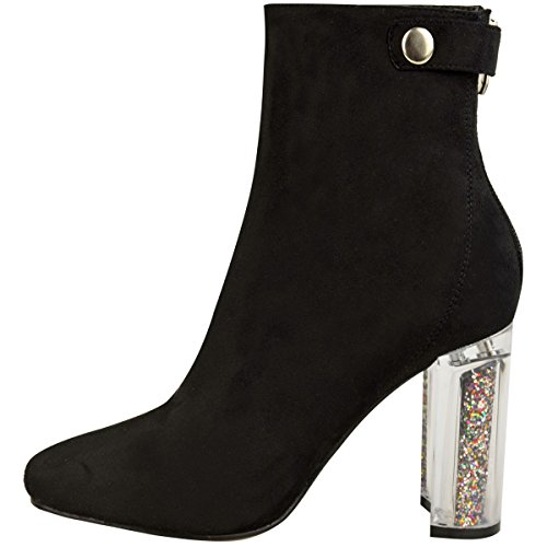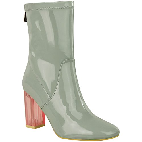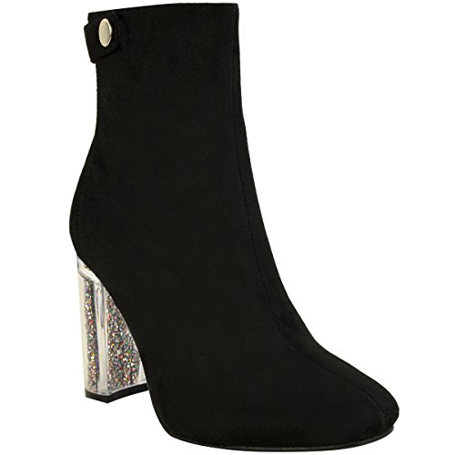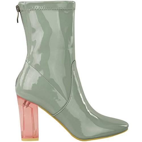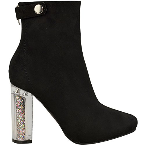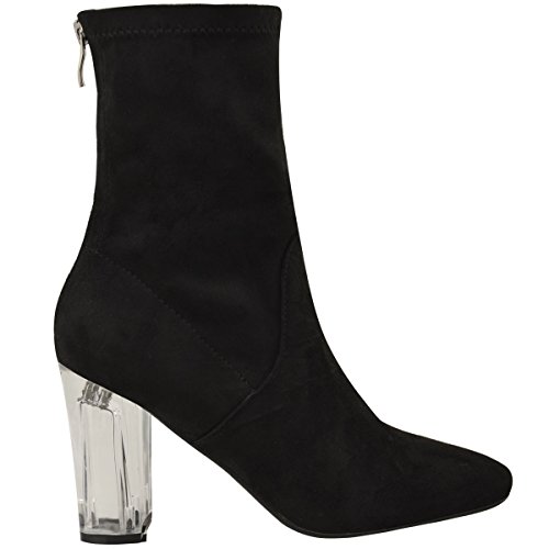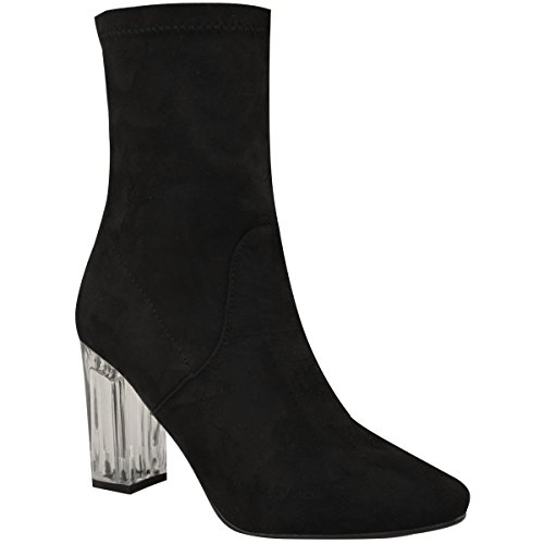 | Fashion Thirsty Womens Ankle Boots Clear Perspex Block High Heel Fashion Shoes Size |